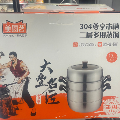 美厨艺木柄三层蒸锅32CM